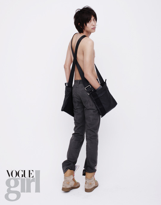 特に、今回の写真で、 カルバンクライン・ジーンズのグレーのデニムだけを履いて、 カバン2つをクロスにかけたカットは、 イ・ミンギ本人のアイデアで、 スタッフたちも驚くほど、秀でた感覚を披露したそうだ。